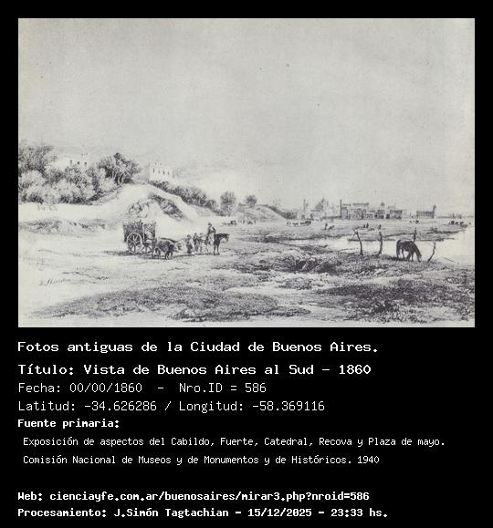 Vista de Buenos Aires al Sud - 1860 - 00/00/1860 - [586] - Orden: 19 La barranca que se observa podría ser el solar del Parque Lezama (aunque las proporciones no sean exactas con las edificaciones que se ven en el horizonte).