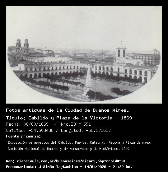 Cabildo y Plaza de la Victoria - 1869 - 00/00/1869 - [591] - Orden: 22 Se muy bien la Iglesia de San Ignacio sobre la izquierda. Y es muy interesante la plantación de árboles en la plaza.