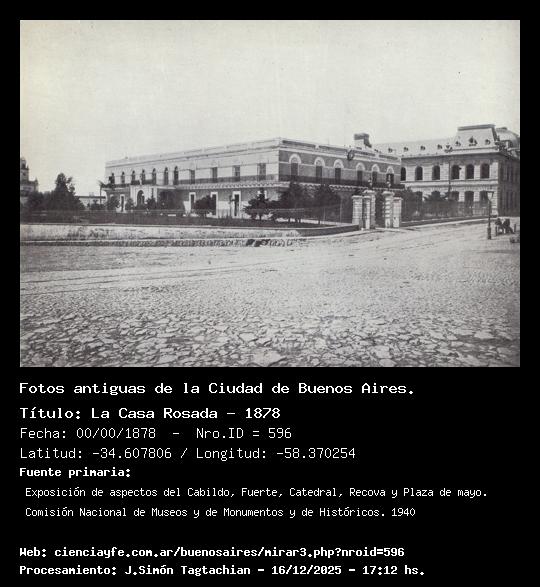 La Casa Rosada - 1878 - 00/00/1878 - [596] - Orden: 25 Primera edificación de la Casa Rosada. Atrás, se ve el Correo. Luego se construiría otro edificio y se unificarían.