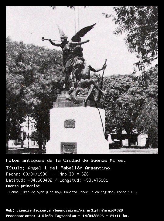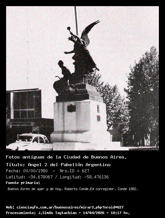 Angel 1 del Pabellón Argentino - 00/00/1980 - [626] - Orden: 62 Se encuentra ubicada hoy en la Plaza Sud América, limitada por las calles Avda Gral Francisco Fernández de la Cruz, Av Piedra Buena, Itaqui y Guaminí.