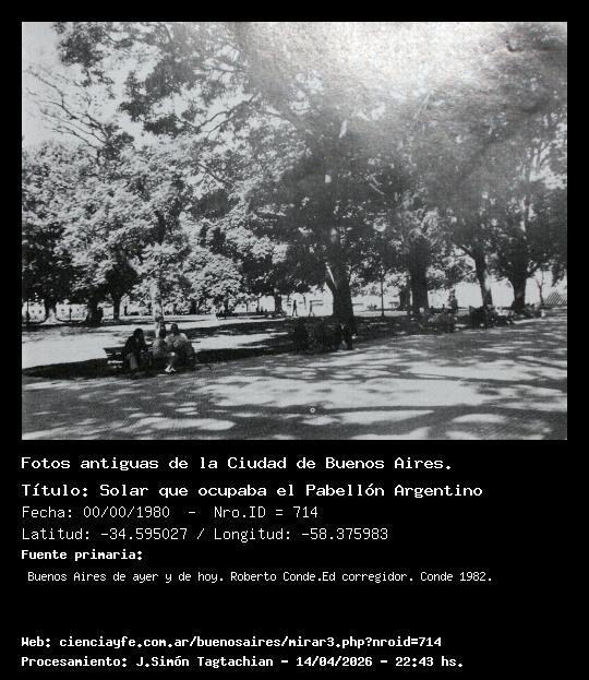 Solar que ocupaba el Pabellón Argentino - 00/00/1980 - [714] - Orden: 107 En 1933 fue desmantelado el Pabellón Argentino. Solo quedó en la Plaza San Martín un cantero muy grande con su traza.