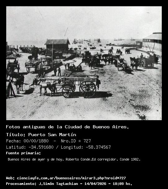 Muelle de pasajeros - 00/00/1880 - [743] - Orden: 20 Fecha aproximada. El Muelle de pasajeros data del 1ro de febrero de 1855. En su entrada se habían construido dos casillas de madera y dependencias donder eran conducidos los pasajeros y revisado su equipaje, que se traian en vagones los cuales circulaban por unos rieles que se encontraban en el centro del muelle. Existió hasta comienzos de 1899. Lo que fuera río, dejo de serlo a fines de 1884 cuando Roca firmó con Eduardo Madero la construcción del nuevo puerto. Alli quedó sepultado el Muro de la Alameda.
