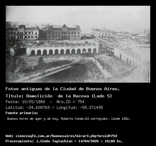 Demolición de la Recova (Lado N) - 10/05/1884 - [753] - Orden: 26 La demolición de la Recova duró del 8 al 17 de mayo de 1884. Se ve la Catedral, la Curia, la Librería Nacional y la vivienda de don Miguel de Azcuénaga. El primitivo Teatro Colón y la Recova.