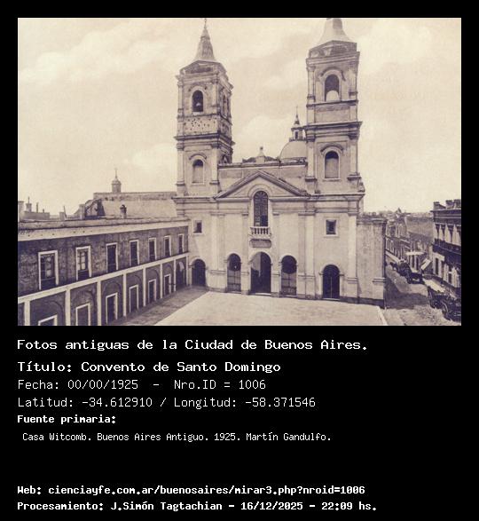 Convento de Santo Domingo - 00/00/1925 - [1006] - Orden: 42 En el año 1603 se estableció la orden en el mismo sitio donde luego se edificaron el convento y la iglesia actual, tercera de la serie comenzada en 1751.