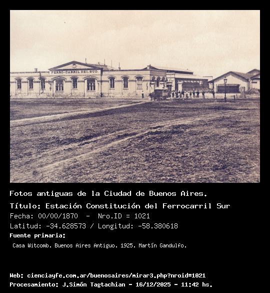 Estación Constitución del Ferrocarril Sur - 00/00/1870 - [1021] - Orden: 18 El 7 de marzo de 1864 se iniciaron, durante la presidencia del General Mitre, las obras del ferrocarril sobre el terreno que después ocupó la estación Constitución, cabecera de la línea.
