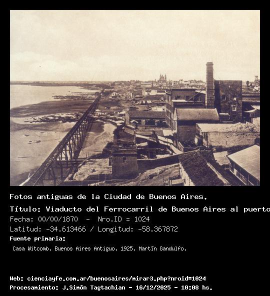 Viaducto del Ferrocarril de Buenos Aires al puerto de la Ensenada. - 00/00/1870 - [1024] - Orden: 19 Nota curiosa y pintoresca ofrecía la ribera del sur cuando, con río crecido, corrían por su viaducto los trenes de la empresa a la Ensenada, cuyo primer convoy lo realizó el lunes 18 de septiembre de 1865, al librarse al público la sección comprendida entre las estaciones Venezuela y Tres Esquinas