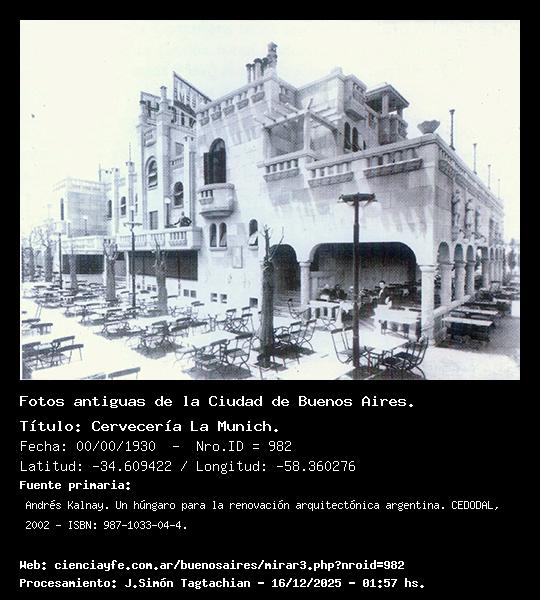 Cervecería La Munich. - 00/00/1928 - [984] - Orden: 5 El arq. Andrés Kalnay, luego de construir la Munich, también se encargó de los kioscos La Alameda y Punch de Naranja. Y los locales Brisas del Plata y la Cervecería Don Juan de Garay. También del Chalet de la Cruz Roja. Todos en la costanera sur.
