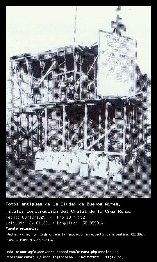 Construcción del Chalet de la Cruz Roja. - 00/12/1929 - [992] - Orden: 6 En la foto se ve el cartel del Arq. Andrés Kálnay, y al pie se ve al cuerpo de la Cruz Roja orgullosos de la obra.