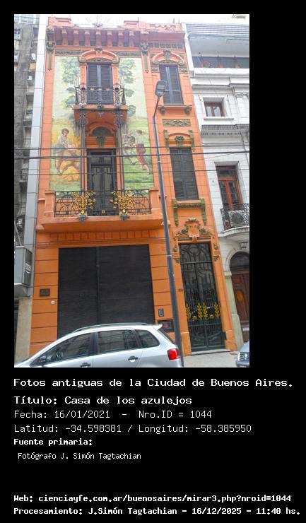 Casa de los azulejos - 16/01/2021 - [Id: 1044] Fuente:Fotógrafo J. Simón Tagtachian |