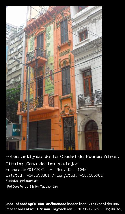 Casa de los azulejos - 16/01/2021 - [Id: 1046] Fuente:Fotógrafo J. Simón Tagtachian |