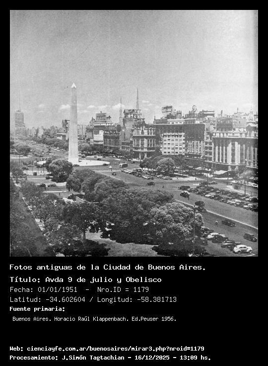 Avda 9 de julio y Obelisco - 01/01/1951 - [Id: 1179] Fuente:Buenos Aires. Horacio Raúl Klappenbach. Ed.Peuser 1956. |