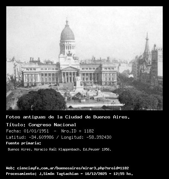 Congreso Nacional - 01/01/1951 - [Id: 1182] Fuente:Buenos Aires. Horacio Raúl Klappenbach. Ed.Peuser 1956. Palabras claves:Confitería del Molino |