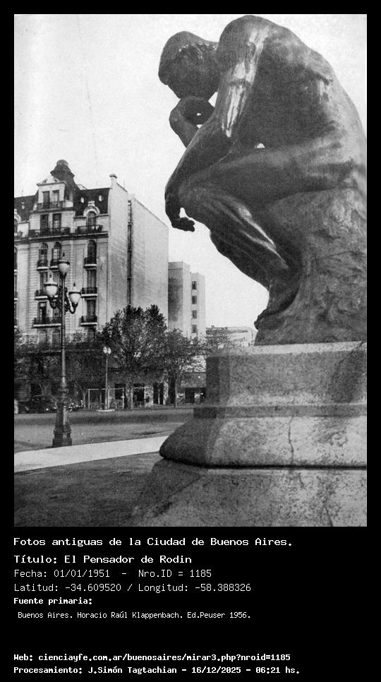 El Pensador de Rodin - 01/01/1951 - [Id: 1185] Fuente:Buenos Aires. Horacio Raúl Klappenbach. Ed.Peuser 1956. Palabras claves:Plaza Congreso |