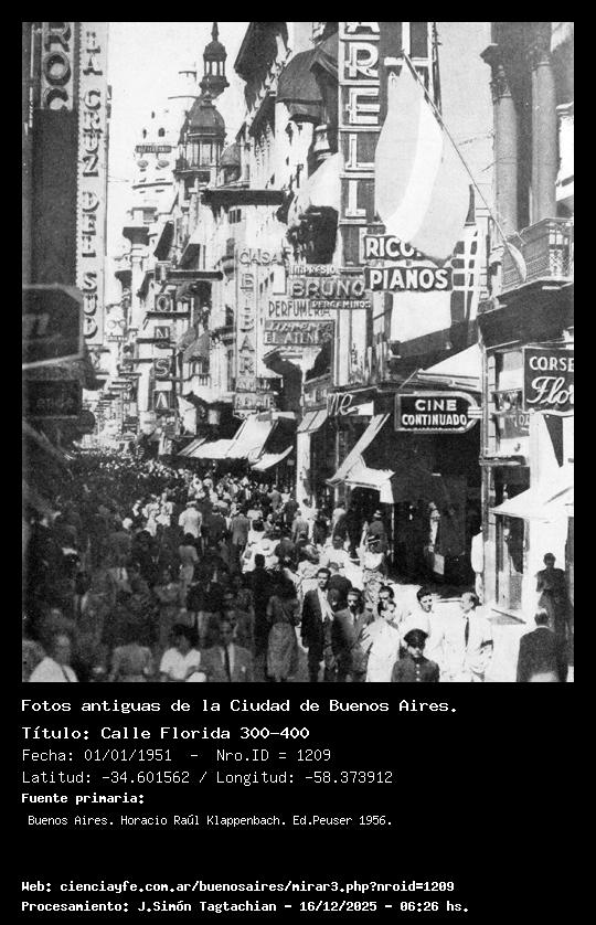 Calle Florida 300-400 - 01/01/1951 - [Id: 1209] Fuente:Buenos Aires. Horacio Raúl Klappenbach. Ed.Peuser 1956. |