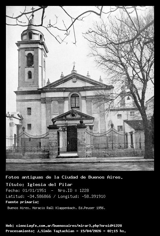 Iglesia del Pilar - 01/01/1951 - [Id: 1228] Fuente:Buenos Aires. Horacio Raúl Klappenbach. Ed.Peuser 1956. |