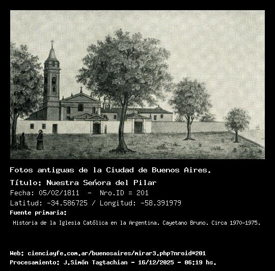 Nuestra Señora del Pilar - 05/02/1811 - [Id: 201] Fuente:Historia de la Iglesia Católica en la Argentina. Cayetano Bruno. Circa 1970-1975. Palabras claves:Iglesia |