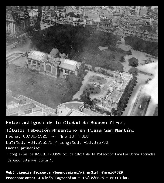 Pabellón Argentino en Plaza San Martín. - 00/00/1925 - [Id: 820] Fuente:Fotografías de BROSZEIT-BORRA (circa 1925) de la Colección Familia Borra (tomadas de www.Histarmar.com.ar). |