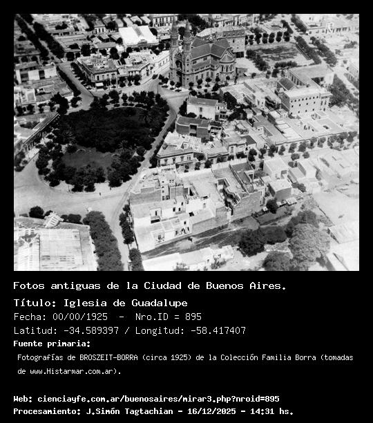 Iglesia de Guadalupe - 00/00/1925 - [Id: 895] Fuente:Fotografías de BROSZEIT-BORRA (circa 1925) de la Colección Familia Borra (tomadas de www.Histarmar.com.ar). |