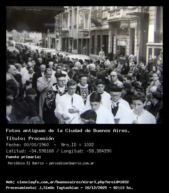 Procesión - Fecha: 00/00/1960 - [Id: 1032] Procesión en la calle Paraguay; foto tomada en las escalaras de la Parroquia hacia Talcahuano. Fuente:Periódico El Barrio - periodicoelbarrio.com.ar