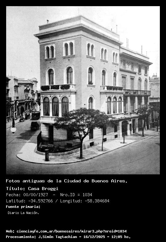Casa Broggi - Fecha: 00/00/1927 - [Id: 1034] arquitecto Luis A. Broggi su vivienda, que mereció el primer premio del Concurso Municipal de fachadas en 1914 Fuente:Diario La Nación.