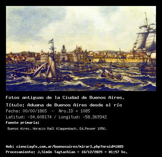 Aduana de Buenos Aires desde el río - Fecha: 00/00/1865 - [Id: 1085] Litografía coloreada de Louis Lebretón Fuente:Buenos Aires. Horacio Raúl Klappenbach. Ed.Peuser 1956.