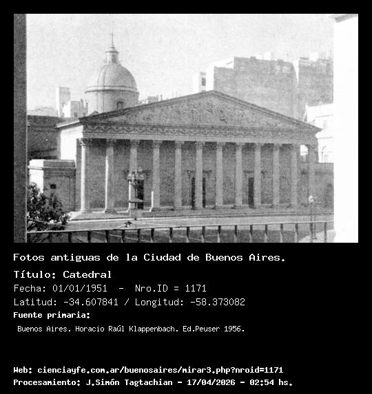Catedral - Fecha: 01/01/1951 - [Id: 1171] Vista de la Catedral desde el balcón del Cabildo. Fuente:Buenos Aires. Horacio Raúl Klappenbach. Ed.Peuser 1956.