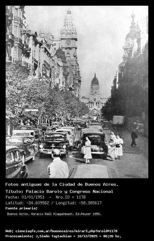 Palacio Barolo y Congreso Nacional - Fecha: 01/01/1951 - [Id: 1178] Fuente:Buenos Aires. Horacio Raúl Klappenbach. Ed.Peuser 1956.