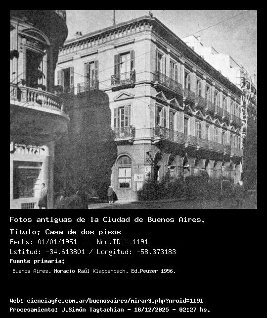 Casa de dos pisos - Fecha: 01/01/1951 - [Id: 1191] Ubicación sin confirmar Fuente:Buenos Aires. Horacio Raúl Klappenbach. Ed.Peuser 1956.
