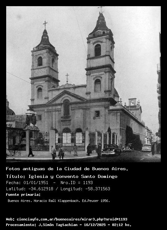 Iglesia y Convento Santo Domingo - Fecha: 01/01/1951 - [Id: 1193] Mausoleo de Belgrano. Fuente:Buenos Aires. Horacio Raúl Klappenbach. Ed.Peuser 1956.