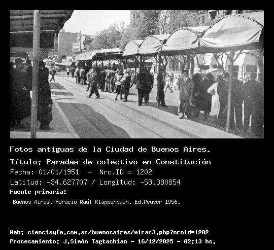 Paradas de colectivo en Constitución - Fecha: 01/01/1951 - [Id: 1202] Fuente:Buenos Aires. Horacio Raúl Klappenbach. Ed.Peuser 1956.