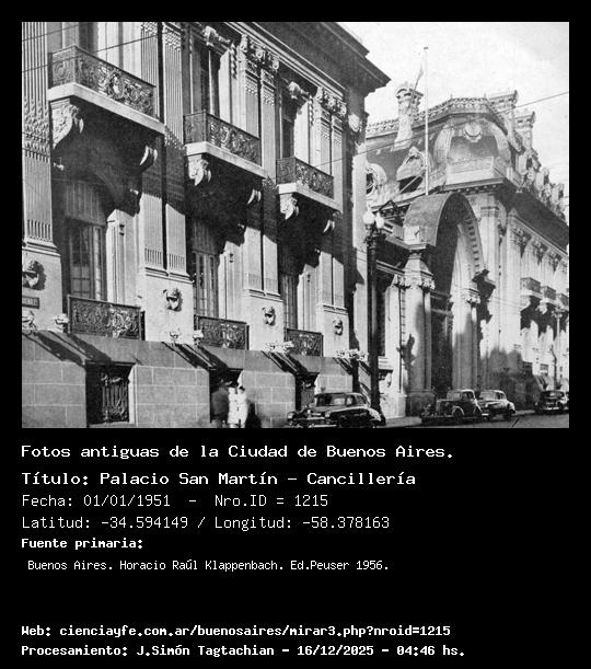 Palacio San Martín - Cancillería - Fecha: 01/01/1951 - [Id: 1215] Fuente:Buenos Aires. Horacio Raúl Klappenbach. Ed.Peuser 1956.