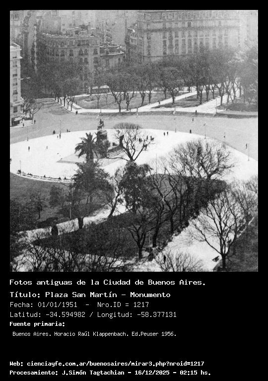 Plaza San Martín - Monumento - Fecha: 01/01/1951 - [Id: 1217] Fuente:Buenos Aires. Horacio Raúl Klappenbach. Ed.Peuser 1956.