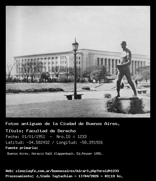 Facultad de Derecho - Fecha: 01/01/1951 - [Id: 1233] En segundo plano, estatua del segador. Fuente:Buenos Aires. Horacio Raúl Klappenbach. Ed.Peuser 1956.