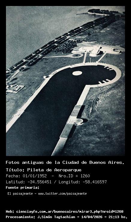 Pileta de Aeroparque - Fecha: 01/01/1952 - [Id: 1260] Se ve la confitería, ubicada al norte de la pileta. Más atrás el espigón (en la actualidad, es donde está el monumento a Colón que fue trasladado desde el jardín del parque Colón, en la Casa Rosada. Fuente:El paisajeante - www.twitter.com/paisajeante