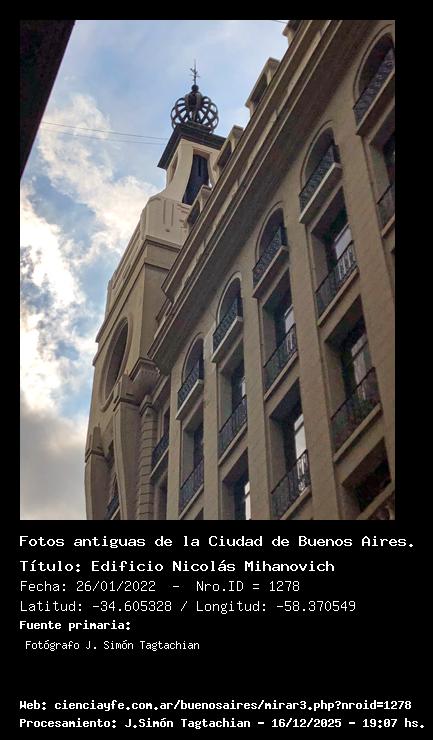 Edificio Nicolás Mihanovich - Fecha: 26/01/2022 - [Id: 1278] Fuente:Fotógrafo J. Simón Tagtachian