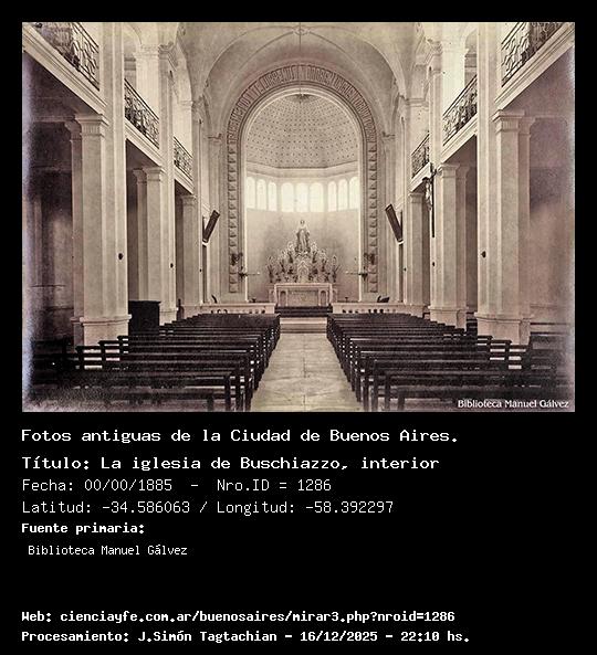 La iglesia de Buschiazzo, interior - Fecha: 00/00/1885 - [Id: 1286] Capilla del asilo de ancianos. Fuente:Biblioteca Manuel Gálvez