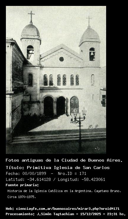 Primitiva Iglesia de San Carlos - Fecha: 00/00/1899 - [Id: 171] La primitiva Iglesia de San Carlos que daba a la calle (hoy) Quintino Bocayuva en el barrio de Almagro. Fuente:Historia de la Iglesia Católica en la Argentina. Cayetano Bruno. Circa 1970-1975.