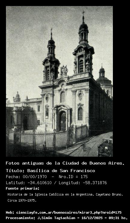 Basílica de San Francisco - Fecha: 00/00/1970 - [Id: 175] Fuente:Historia de la Iglesia Católica en la Argentina. Cayetano Bruno. Circa 1970-1975.