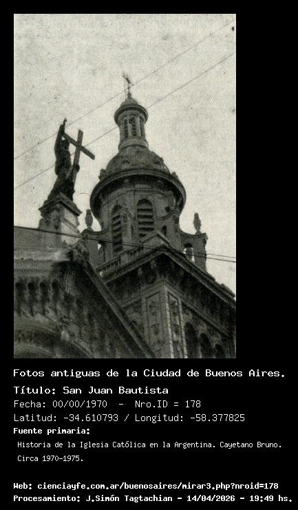 San Juan Bautista - Fecha: 00/00/1970 - [Id: 178] Iglesia San Juan Bautista contigua al monasterio de Santa Clara (antiguas Capuchinas). Fuente:Historia de la Iglesia Católica en la Argentina. Cayetano Bruno. Circa 1970-1975.