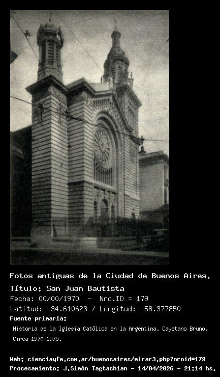 San Juan Bautista - Fecha: 00/00/1970 - [Id: 179] Fuente:Historia de la Iglesia Católica en la Argentina. Cayetano Bruno. Circa 1970-1975.