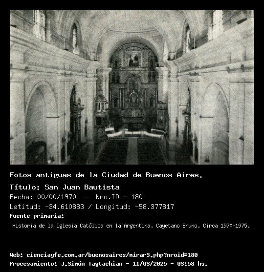 San Juan Bautista - Fecha: 00/00/1970 - [Id: 180] Interior de la Iglesia Fuente:Historia de la Iglesia Católica en la Argentina. Cayetano Bruno. Circa 1970-1975.