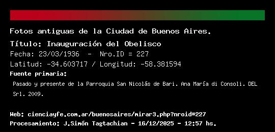 Inauguración del Obelisco - Fecha: 23/03/1936 - [Id: 227] Fuente:Pasado y presente de la Parroquia San Nicolás de Bari. Ana María di Consoli. DEL Srl. 2009.