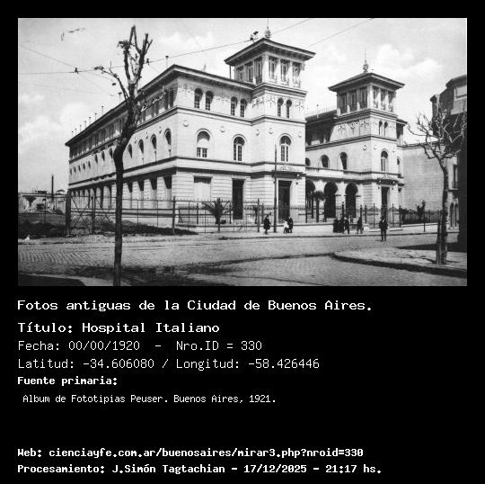 Hospital Italiano - Fecha: 00/00/1920 - [Id: 330] Fuente:Album de Fototipias Peuser. Buenos Aires, 1921.