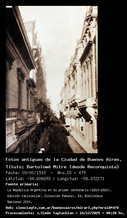 Bartolomé Mitre (desde Reconquista) - Fecha: 00/00/1910 - [Id: 479] Falta determinar si la vista es hacia el Este o el Oeste. Fuente:La República Argentina en su primer centenario (1810-1910). Edición facisimilar, Colección Panunzi. Ed. Biblioteca Nacional 2010.