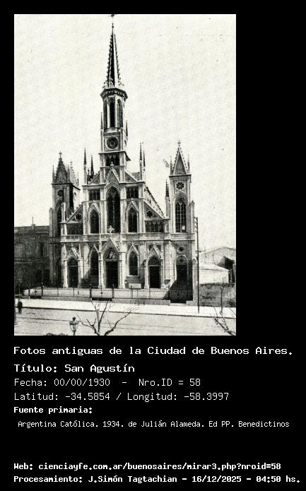 San Agustín - Fecha: 00/00/1930 - [Id: 58] Fecha_aproximada Fuente:Argentina Católica. 1934. de Julián Alameda. Ed PP. Benedictinos