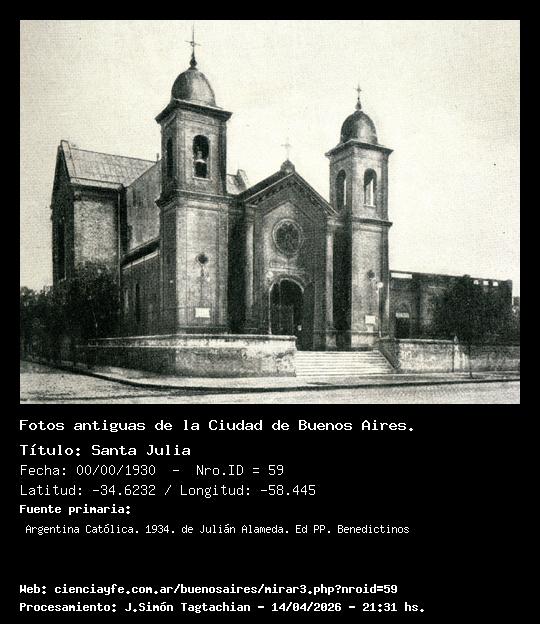 Santa Julia - Fecha: 00/00/1930 - [Id: 59] Fecha_aproximada Fuente:Argentina Católica. 1934. de Julián Alameda. Ed PP. Benedictinos
