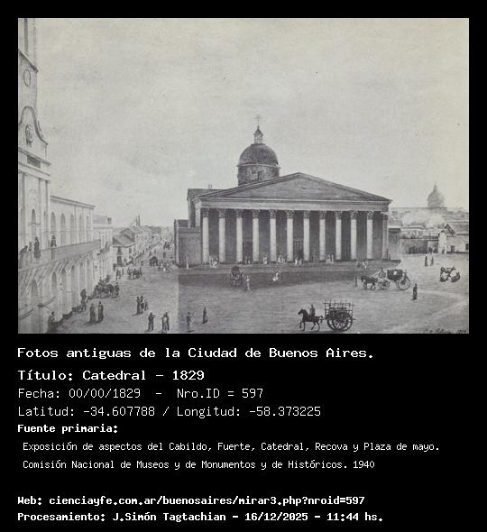 Catedral - 1829 - Fecha: 00/00/1829 - [Id: 597] Fuente:Exposición de aspectos del Cabildo, Fuerte, Catedral, Recova y Plaza de mayo. Comisión Nacional de Museos y de Monumentos y de Históricos. 1940