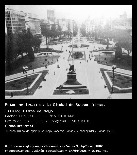 Plaza de mayo - Fecha: 00/00/1980 - [Id: 662] Prolija la plaza con todo muy ordenado y limpio. Fuente:Buenos Aires de ayer y de hoy. Roberto Conde.Ed corregidor. Conde 1982.
