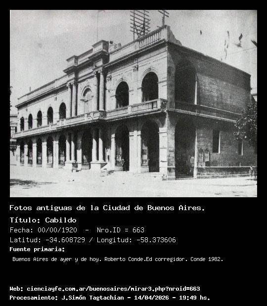 Cabildo - Fecha: 00/00/1920 - [Id: 663] Fecha aproximada Fuente:Buenos Aires de ayer y de hoy. Roberto Conde.Ed corregidor. Conde 1982.