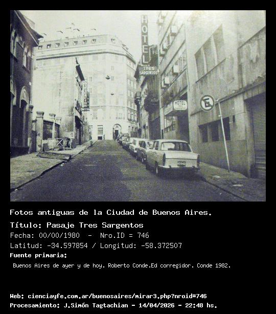 Pasaje Tres Sargentos - Fecha: 00/00/1980 - [Id: 746] Fuente:Buenos Aires de ayer y de hoy. Roberto Conde.Ed corregidor. Conde 1982.